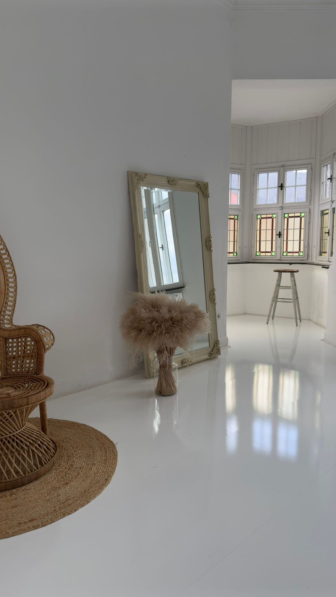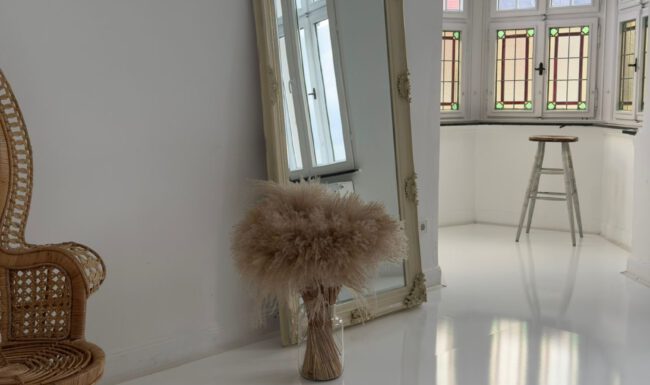 Der Boho Room ist ein Ort, der die Seele der Bohemians einfängt und mit seinen kunstvollen und schlichten Elementen eine unvergleichliche Atmosphäre schafft. Die rustikalen Möbel, die üppigen Trockenpflanzen und die zahlreichen Vintage-Accessoires schaffen eine gemütliche und warme Umgebung, die ideal für Fotoshootings ist.
